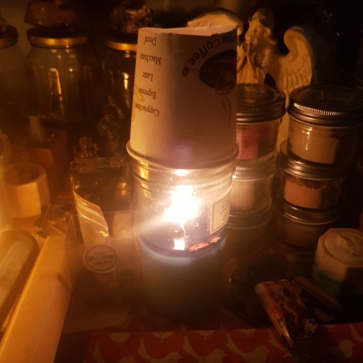 建議可以使用燭蓋或是自己用紙杯裁剪一個燭罩,可以幫助循環使蠟燭燃燒的更乾淨(請參考最後一張圖)