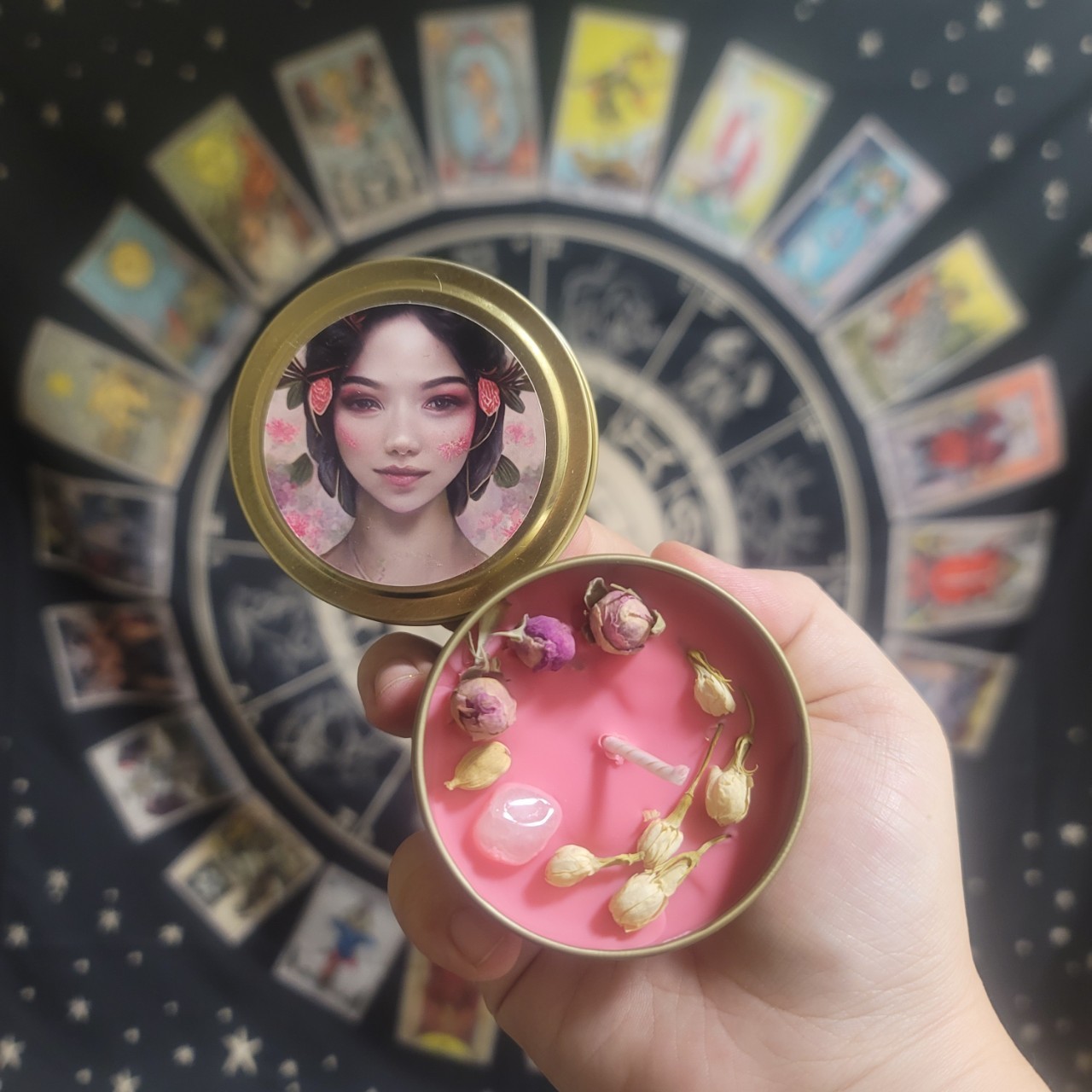 含有玫瑰天竺葵、薰衣草、玫瑰精油及薰衣草、玫瑰、茉莉花草,集合了月神的能量,在滿月之時用來許願,會特別靈驗。