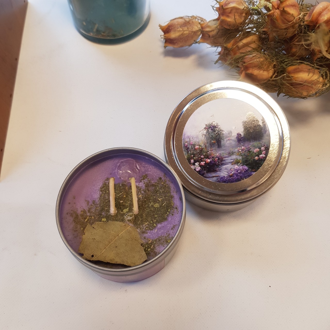 ☆移出花草:內置大株藥草可能會起火,如有安全疑慮使用前請移除,尤其玫瑰茉莉等花草會著火,可能會導致火源接近杯邊溫度太高杯子會燒破,請先將花拿出杯子,並且每次使用前修剪燭芯