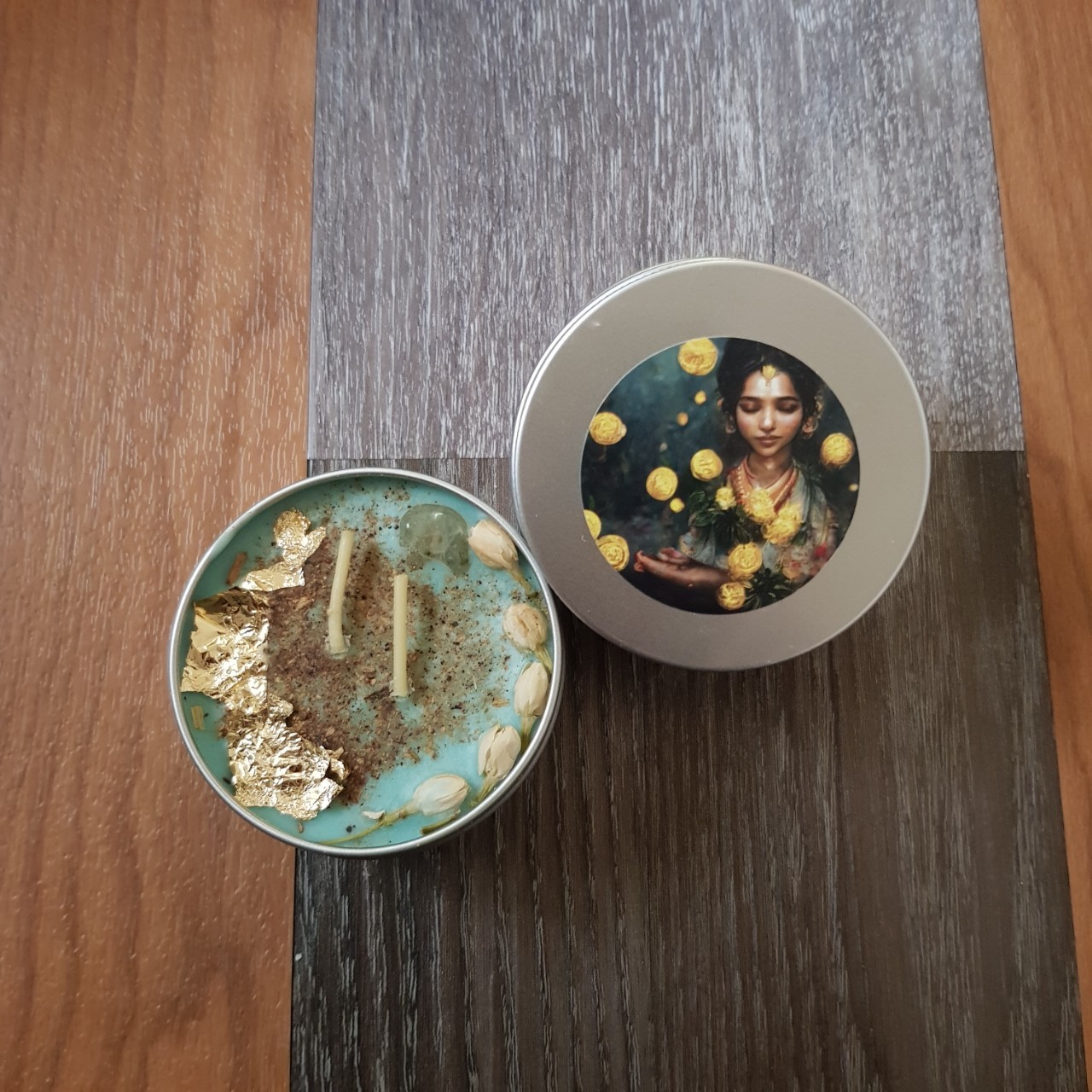 成分:廣藿香、綠花白千層、檸檬薄荷、肉桂粉、茉莉花、金箔、葡萄石
